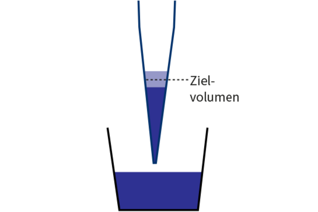 Das Zielvolumen entspricht dem vollen Flüssigkeitsvolumen in der Pipettenspitze. Daher ist auf eine vollständige Volumenabgabe zu achten.